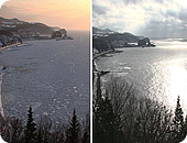 去年と今年の流氷の違い、左が去年本来、2月のオホーツク海沿岸は、流氷で覆われてしまうのですが、流氷の世界に、大きな異変が起きているようです。