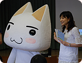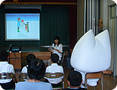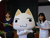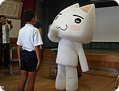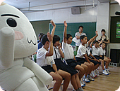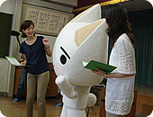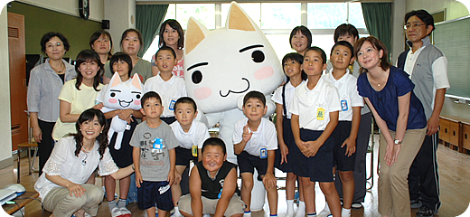 2007年から始めたこの活動の11回目にあたる今回は、子どもたちに人気のキャラクター“トロ”も参加。静かな小学校に、7人の子どもたちの歓声が上がりました。