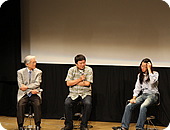 朝10時の早稲田大学作品上映を皮切りに最後の日本大学まで、8時間以上に渡る大上映会でしたが、会場のマルチシアターは、学生さんと学校関係者、『お台場合衆国2009』の来場者の皆さんで、各回、ほぼ満席の盛況でした。一作品ごとに監督を交えて、映画評論家・佐藤忠男さんと、第一線で活躍中の映画関係者、フジテレビの映画プロデューサーのトークセッションも実施。