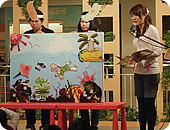 3月21日、フジテレビがプロデュースするエンターテインメントレストラン「フジテレビキッズカフェママトコ」のイベントスペースにおいて、「どっこくん」の紙芝居・歌・体操のお披露目をいたしました。ママトコのイベントスペースでは、子どもはもちろんパパ、ママが楽しめるワークショップ、教室、イベントなどをこれまでも多く開催しています。またレストランスペースには、パパ、ママがうれしいヘルシーな和食と子どもたちが喜ぶメニューをおりまぜたランチビュッフェがあり、今やママトコは、お台場を訪れる親子の名所となっています。
