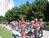 「アースライド」とは、「地球への恩返し」をテーマとして、自転車で走りながら、地球環境のために何が大切かを感じて欲しいと、一昨年前石垣島でスタートしたイベントです。その東京版が「東京アースライド」。