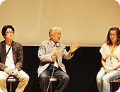 朝10時の立教大学から、最終上映の武蔵野美術大学まで、8時間以上に及ぶ大上映会でしたが、会場のマルチシアターは、学生さんと学校関係者、『お台場合衆国2010』の来場者の皆さんで、各回、ほぼ満席の盛況でした。一作品ごとに監督を交えて、映画評論家・佐藤忠男さんと、第一線で活躍中の映画関係者、フジテレビの映画プロデューサーのトークセッションを実施。
