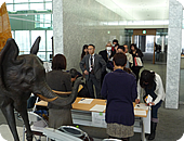 2010年7月、CSR推進プロジェクト会議でカラーユニバーサルデザイン(CUD)の研究チームが立ち上がり、その後、数回のプレ勉強会を経て、フジテレビのみならずフジ・メディア・ホールディングス各社や系列局を巻き込んだ勉強会が実現しました。2月24日勉強会当日、開始時刻を過ぎても受付には40人を超える人の列。CUDへの関心の高さを物語る光景にこの勉強会の主催者側としては「してやったり・・・」と胸をなでおろしました。