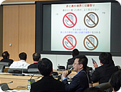 その後、質疑応答を含め1時間半の勉強会が終了しましたが、まだカラーユニバーサルデザインの入り口にすぎません。これからは各職場に応じた色の課題を掘り起こし、スタッフで話し合い、そして解決に向けた行動が必要となります。映像だけでなく紙媒体やイベントの案内表示にいたるまで、勉強会の内容がフジテレビをはじめとする各社の業務に遺憾なく発揮されなければなりません。このテーマを、今後のフジテレビのCSR活動の一環として推進したいと考えています。