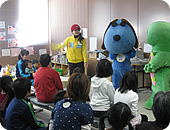 3月26日東日本大震災から2週間余り、東京都内の3か所の避難所をガチャピンとラフくんが訪れ、被災した子どもたちにおもちゃや文房具を届けて励ましました。