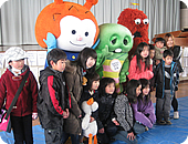 集まった子どもたちは約70人。小雨が降る寒い屋外でのガチャピン・ムックとの交流会・写真撮影会でしたが、最後まで大はしゃぎで握手をする子どもたちの姿が印象的でした。