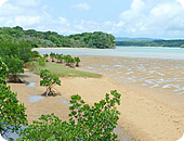 沖縄県石垣島の川平湾実際のマングローブの植林は、現地の農法有限会社川平ファーム(本社:沖縄県石垣市、代表者:橋爪雅彦)ご協力の下、沖縄県石垣島の北西部にある、川平湾に面した土地に実施します。