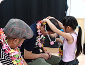 また「大代保育所」では、私たち全員に手作りのレイを首にかけてくれました。保育所の年長さんたちが一生懸命手作りしてくれた宝物のようなレイです。