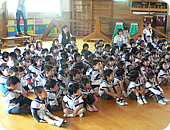 午後、ふたつめの幼稚園は同じ宮古市の小百合幼稚園へ。とても大きな幼稚園で、みんなきちんと先生の言うことを聞き、整列もちゃんとできる優秀な子ども達に、びっくり。