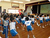 子どもたちは「どっこくん体操」をしっかり予習してきてくれていてとても