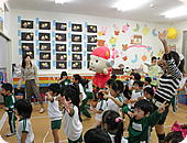 「こども達、今日の日をすごく楽しみにしていたんですよ~」と笑顔で迎えてくれる先生達。私達が幼稚園に入っていくと、手を振ってくれたり、駆け寄ってきてハイタッチをしてくるこども達。朝から元気一杯でした。