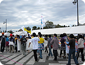 リレーが行われている横での朗読、聞いてくれるのかな?