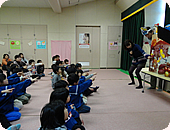 みんな、目を輝かせて一生懸命聞いてくれましたよ!旬の野菜を紙芝居の中に発見すると、積極的に指をさして探してくれました。みんなとっても元気元気!!