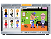 簡単な操作で、顔型、髪型、目鼻口など各々約100種のパーツを自由に組み合わせてキャラを作成し、ステージに配置してストーリーを作成します。小物や風景など480種の画像アイテムも用意。作品は画像や動画に書き出すことができ、キャラクターや編集ファイルは他のユーザーと共有できます。