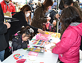 B級グルメなどが立ち並ぶ屋外エリアに設けられたCSR推進室のブースでは、フジテレビがこの1年間継続して行ってきた「こどもおうえんプロジェクト」の活動内容をVTRと写真で紹介するとともに、訪れた子どもたちに「ありがとうのメッセージ」を書いてもらい、木に見立てたボードに貼り付けていくミニ・ワークショップを開催。