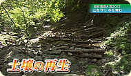 南アルプスの森では、丸太で土の流出をせき止め、草木を育てることで山の再生に取り組んでいました。