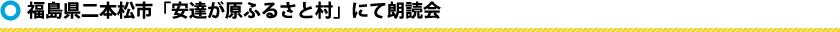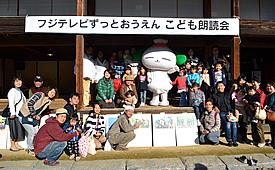 福島県二本松市にある「安達が原ふるさと村」で11月3日、朗読会を開催。二本松市には、震災による放射能被害を避けて浪江町から避難してきた人たちが多く暮らしています。地元の青年会議所から協力依頼を受け、「福幸祭」という復興イベントにおいて西山喜久恵アナウンサーの朗読会を開催。戊辰戦争に出陣し命を落とした二本松少年隊の実話など数作品を朗読しました。また福島テレビのふくたんも駆けつけ子どもたちに大人気でした。