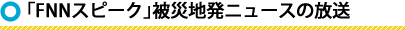 昼のニュース番組「FNNスピーク」では、東日本大震災の被災者に寄り添っていこうという趣旨のもと、震災発生から1年を機に「被災地発ニュース」をほぼ毎日放送しています。またその情報を「FNNスピーク」ホームページでも公開しています。