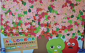 CSRプロジェクトチームでもブースを設け、来場者に<夢>をテーマにしたメッセージを書いてもらい、それをボードに貼りつけた“夢の木” を完成させました。