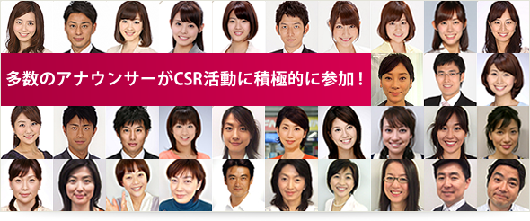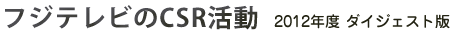 フジテレビのCSR(= Corporate Social Responsibility 企業の社会的責任)活動は、主に「被災地支援」「社会貢献」「環境」の3つに分類されます。2011年3月11日、東日本大震災に見舞われて以降、フジテレビのCSR活動の柱に「被災地支援」が加わりました。未曾有の大震災を風化させない、被災地の方々を忘れないということが、フジテレビが社会に対して約束する「責任」だと考え、2012年度は被災地支援「ずっとおうえん。プロジェクト」を軸に活動を行いました。CSR活動の実施にあたっては、社内の各セクションから選出された※「CSR推進会議プロジェクトチーム」メンバーが真剣に検討し、積極的に推進しています。