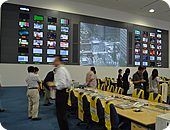 有事のときに司令部となるオペレーションルームは、とにかく広い!約960m2、座席数186(他に打ち合わせスペース84)、300インチのリアプロジェクションモニター。デスクにはパソコンがずらり。備品も沢山準備されていました。 2年に1回大規模訓練を行っているそうですが、普段使用されていないのがもったいない。