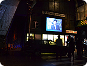 震災直後の崩壊した街をリアルに再現 モニターには川端アナの緊急ニュースが常に流れ緊迫感が… |