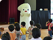 岐阜県関ヶ原町は東海テレビの放送エリアということで、イベントの途中で東海テレビのキャラクター「わんだほ」も登場。ふわふわした「わんだほ」は子どもたちに大人気で、一緒に体操して触れ合うことが出来ました。