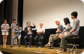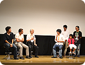 | 佐藤忠男さん・尾野慎太郎監督(武蔵野美術大学)と出演者 | 上原寿一P・本広克行監督・佐藤忠男さん・李鎭雨(イジヌ)監督(日本映画学校) | 土屋健P・佐藤祐市監督(共同テレビ)・佐藤忠男さん・奥田和雅監督(東京工芸大)とスタッフのみなさん |