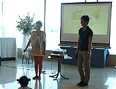 ホテル観洋で発声練習この日の先生はフジテレビの戸部洋子アナウンサーと仙台放送の広瀬修一アナウンサー。