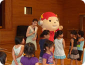 名足保育園は、偶然にも仙台放送のキャラクタージュニくんが番組「ジュニ体操」の収録でお邪魔したばかりで、ジュニくんの再登場に大喜び。