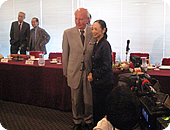 森下洋子(日本)さんまた、この会見には、特別ゲストとして彫刻部門の受賞者チェッコ・ボナノッテさんと演劇・映像部門の受賞者 森下洋子さんも出席しました。