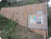 竹でできた案内看板 建設地は、自宅も父親も津波で失った男性が