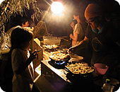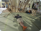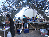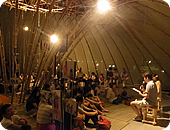 みな真っ赤に日焼けしながら、地元の方々を迎えるべく、今回の集いの場となる竹細工の手作りドームを手入れし、会場を設営してくれていました。