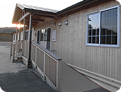 園舎が被災したという『田老保育所』は現在、仮設園舎として『グリーンピア三陸みやこ』敷地内に建っています。仮設とはいっても木目調の温かい雰囲気がとても印象的でした。