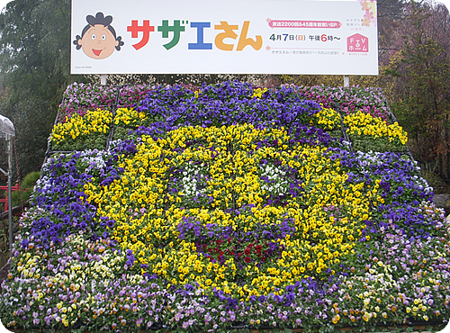 「サザエさん」in福島!!福島市の花見山公園にサザエさん花壇が登場!