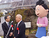 福島県福島市にある花見山。日本を代表する写真家故秋山庄太郎氏が「福島に桃源郷あり」と毎年訪れていた場所で、4月中旬には、桜と桃が一緒に咲く場所として有名です。その花見山公園で、4月3日<サザエさん花壇>の序幕式が行われました。