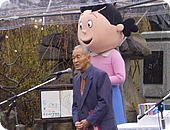 除幕式当日はあいにくの雨に見舞われてしまいましたが、福島県の佐藤雄平知事や長谷川町子美術館の川口淳二館長、さらにサザエさん役の声優で女優でもある加藤みどりさんも駆けつけ、華々しくイベントを開催することができました。
