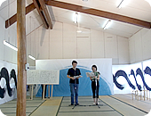 私も中に入りましたが、ぐるぐる回ってぐるぐる降りると全く違う場所に出ていてマジックにかけられているようでした。そして、今回の朗読会は東京造形大学の皆さんのマジックならぬ素敵な美術作品で盛り上げていただき、一味もふた味も違う朗読イベントになりました。