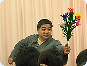 「花咲かじいさん」と長野県や甲信越地方に伝わる「鳥呑み爺」を朗読しながら次々と飛び出すマジックに、会場からはどよめきや拍手がわき起こりました。
