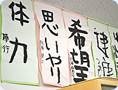 通所者による力強い書道の作品真夏の南三陸町で、実に沢山のことを学び取ることができました。