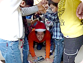 続いて向かったのは、「のびる幼稚園」。ここも津波の被害をうけ、小野地区にある洋裁工場の建物を間借りして運営されているんです…。とてもとてもちいさな幼稚園。ここではマイクもいりません!