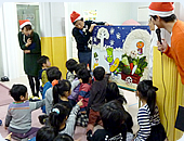 1ヵ所目が、津波被害のため、仮設コンテナで運営されている小野保育所です。みんな朝早かったのか、最初の「おはようございます」の声がやや小さめ。(笑)