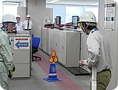 訓練の開始に先立ち、亀山社長が自ら非常災害放送による陣頭指揮をとり、緊張感あふれる中、訓練が開始されました。