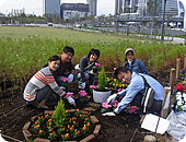 臨海副都心の町内会ともいえる「まちづくり協議会」の環境作業部会に所属するフジテレビも5人のグループを組んでこのコンテストに参加し、可憐な花壇を作ってきました。