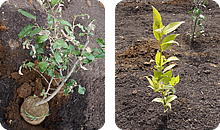 ボクが植えたんだ! 今回は、アキニレ、シロダモ、ヤブツバキ、グミ、モチ、エノキの6種類約90本の苗木を植樹。