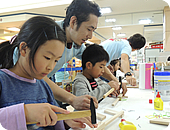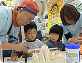セットの建込みや衣裳をつけての変身以上に盛り上がっていたのが工作コーナー。セットの廃材を利用して準備したパーツを組み立てて、輪ゴム鉄砲を作りました。100セット用意した工作キットは、すべてなくなりました。