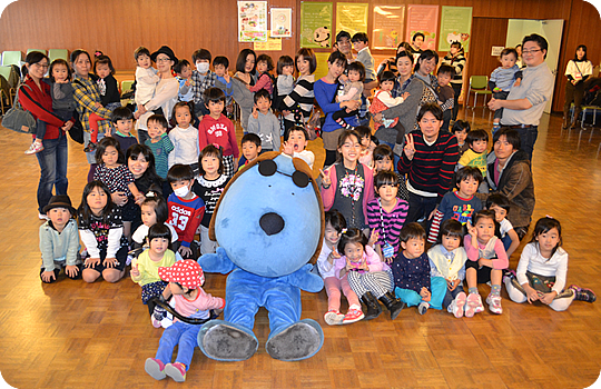 保護者の方々も一緒に元気に体操をして、最後はラフくんと記念撮影。