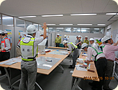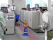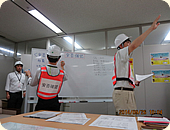 今年の「防災ウィーク」の目玉であり、重点テーマである『実践』と『初動3時間』を想定した、発災後の初動対応を行う人事局・総務局メンバーを中心に構成された『CMT』(クライシス・マネジメントチーム)が発足。大規模地震対応模擬訓練では「館内放送」「情報収集・整理」「指令・命令」など、設定したストーリーに対処する初動に特化した訓練を実施しました。