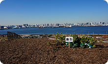 ここには、1973年から1987年の間に出た1230万トンものゴミが埋め立てられているのですが、まだ分別が徹底されていない時代だったため、様々なものがなものが混ざっているそうです。そのため苗木を植えても元気に育つように、その基礎作りには、ゴミと建設発生土をサンドイッチ構造にして、その上をさらにリサイクル土や建設発生土で覆い、 植物に影響がないように工夫されています。