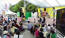 5月3日「こうち春花まつり」の会場にある花舞台で、高知さんさんテレビスペシャルステージ「食育出前授業『ハロー!どっこくん。』」を開催しました。